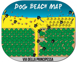 ?Dog Beach?, gelegen aan de weg van San Vincenzo naar Piombino, 800 m na het bord ?San Vincenzo?. Je kunt langs de weg parkeren. De helft van het strand is publiek, op de andere helft zijn parasols en strandbedden e.d. die gehuurd kunnen worden. In augustus en in de weekeinden is het handig op vooraf te bellen of er plaats is (je kunt ook vooraf reserveren) tel.: Luca 0039 393 9658548 ? Alessandro 0039 393 9527912.