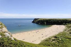 Het strand. dat eigendom is van de National Trust. maakt deel uit van de Zuid-Pembrokeshire Heridage Coast en Pembrokeshire Coast National Park.