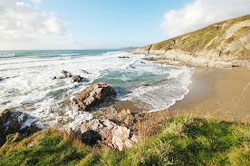 Op het South West Coast Path. Het strand en de omgeving worden onderhouden door de National Trust