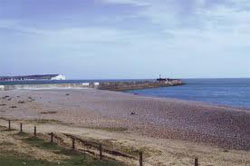East Sussex / Newhaven The beach is accessed from Newhaven town centre. from South Way turn left to Riverside. then left into Fort Road which leads to the beach car park.